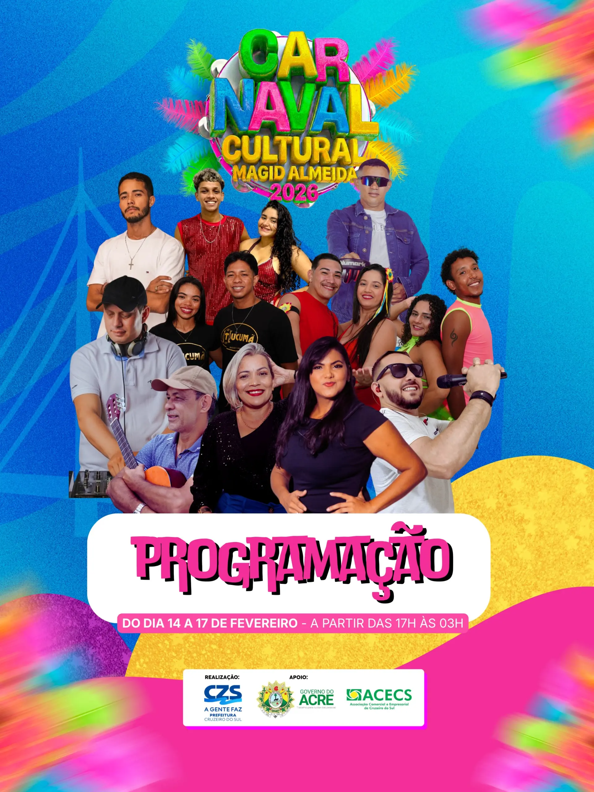 O Carnaval Cultural Magid Almeida 2026, que será realizado nos dias 14, 15, 16 e 17 de fevereiro, na praça Orlei Cameli pela Prefeitura de Cruzeiro do Sul deverá reunir até 40 mil pessoas nas quatro noites de festa. Com estrutura já em fase final de montagem, o evento é o único carnaval popular aberto ao público na região do Juruá.