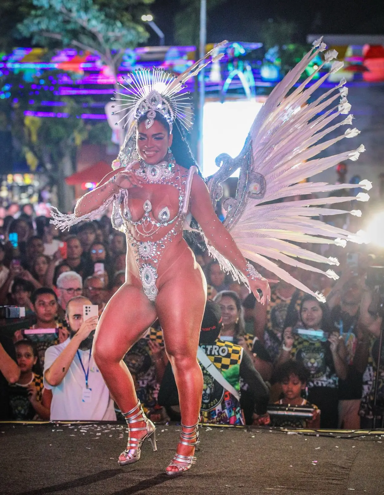 Já na disputa pela coroa de Rainha do Carnaval, Luiza Sousa, representante do bloco 6 é D+, foi eleita com 196, 3 pontos. Em segundo lugar ficou Karol Bombom, da Sambase, com 188,8 pontos. A terceira colocação foi de Érika Oliveira, da Unidos do Fuxico, com 187,3 pontos, vencedora de 2025.