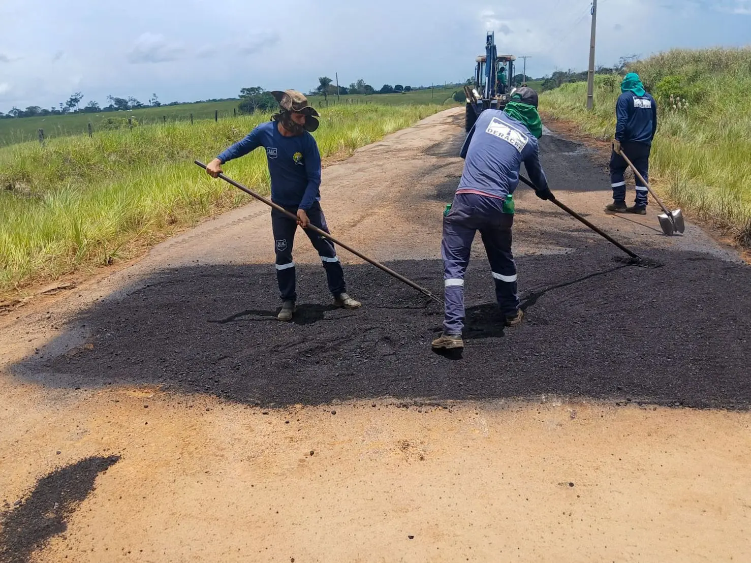 As equipes aplicam massa asfáltica nos pontos onde o pavimento apresentou buracos e desgaste, principalmente após as chuvas. O objetivo é evitar que o problema aumente e garantir condições seguras de tráfego.