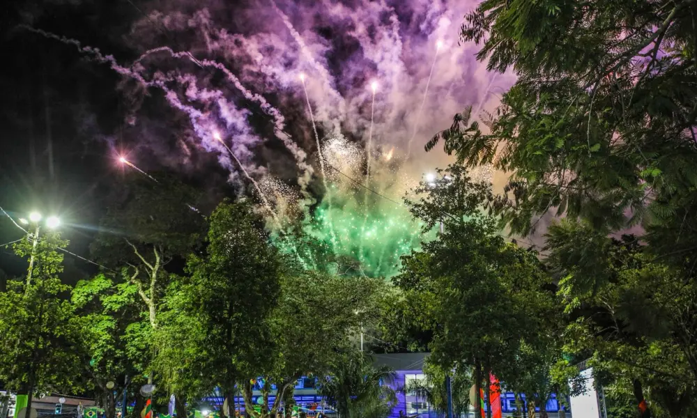 Encerrando a abertura oficial, ao som da bateria, a prefeitura promoveu uma queima de fogos para saudar o Carnaval 2026.