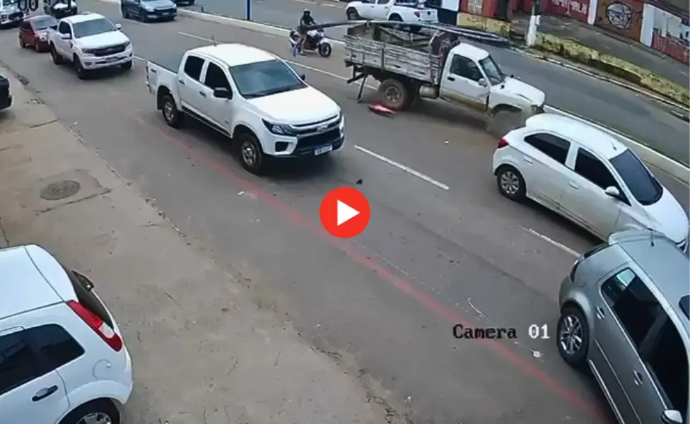 Imagens de câmeras de segurança mostram a sequência de um acidente que deixou Kamilla Matos de Lima, de 31 anos, ferida na manhã desta sexta-feira (13), na Avenida Ceará, bairro Estação Experimental, em Rio Branco.