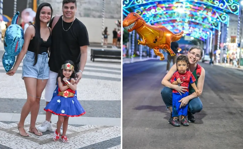A movimentação de crianças chamou atenção pelas fantasias mirins e pela representação de personagens diversos. Muitos aproveitaram para registrar fotos no local.