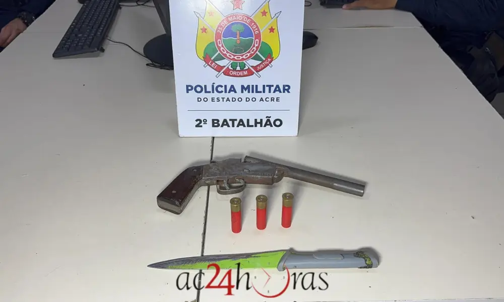 Uma ação dos Policiais Militares do Tático do 2º Batalhão resultou na prisão de Francisco da Silva Gomes, de 29 anos, por porte ilegal de arma de fogo e porte de arma branca na noite deste sábado (14), na Rua do Passeio, bairro Taquari, no Segundo Distrito de Rio Branco.