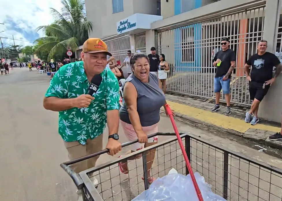 A cena foi registrada pelo videomaker Kennedy Santos, do ac24horas, durante a cobertura da festa no bairro. Entre brincadeiras e pedidos bem-humorados aos foliões, Graça mostra que o trabalho também faz parte da celebração.