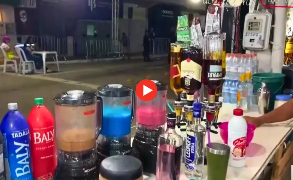 Em outra barraca, Roberta, do chamado “Império do Copo Sujo”, vende a bebida a R$ 10 e destaca a essência utilizada na preparação. “Não é sabão em pó, é essência”, brincou, referindo-se ao pó colorido usado nas misturas. “Pode vir, estamos aqui pra atender”, reforçou.