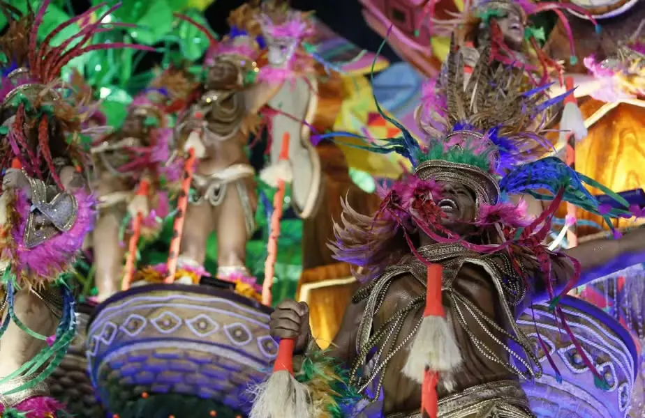 Na comissão de frente, onças articuladas chamaram atenção. Produzidas por profissionais de Parintins, no Amazonas — terra natal de Mestre Sacaca —, as esculturas reforçaram a integração cultural da Região Norte no desfile.