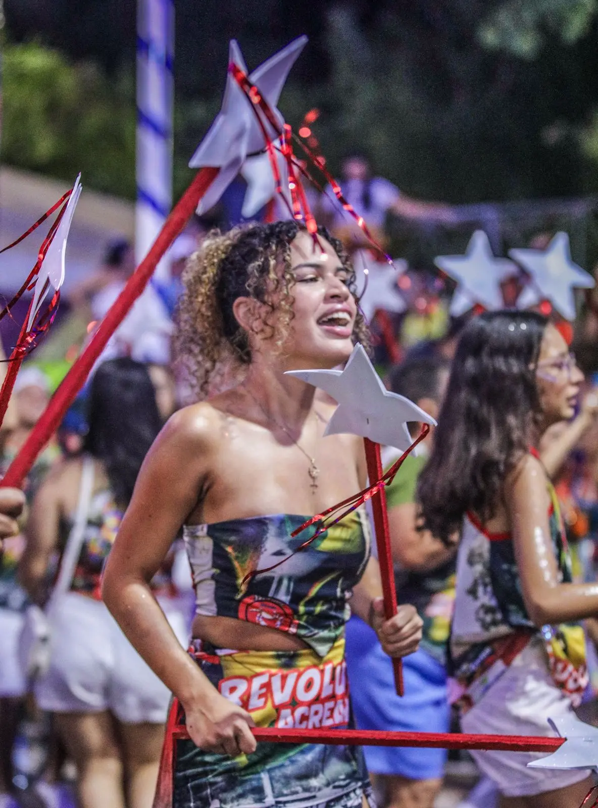 O bloco Sambase, tradicional do bairro da Base, levou para a Avenida Getúlio Vargas, nesta terça-feira, 17, um desfile marcado pela forte identidade histórica e cultural durante o Carnaval Rio Branco Folia – Tradição e Alegria 2026, realizado na capital acreana. Com um samba-enredo em homenagem à Revolução Acreana e à luta do povo que batalhou para que o território se tornasse brasileiro, a agremiação transformou a memória coletiva do estado em espetáculo.