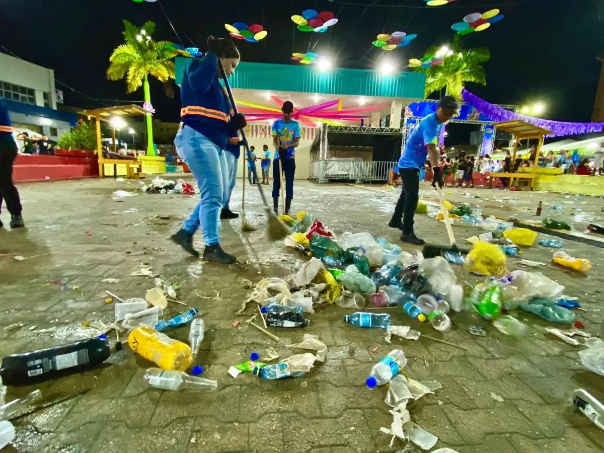 Nas quatro noites de carnaval na Praça Orleir Cameli, em Cruzeiro do Sul, foram coletados 61 toneladas de lixo do local. Desse total, 14 toneladas são de materiais recicláveis e as outras 35 toneladas são de lixo orgânico e outros resíduos.