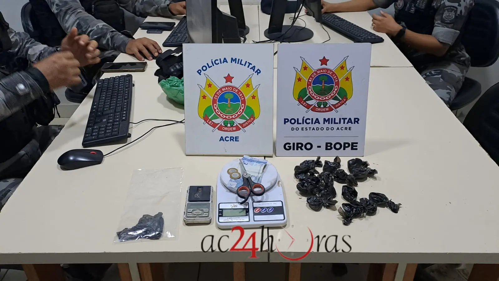 Ezequiel Ferreira da Silva Apurinã, de 19 anos, foi preso pelo crime de tráfico de drogas na noite de quarta-feira (18), durante uma ação da Companhia GIRO, do Batalhão de Operações Especiais (BOPE), no bairro Baixa da Colina, em Rio Branco.