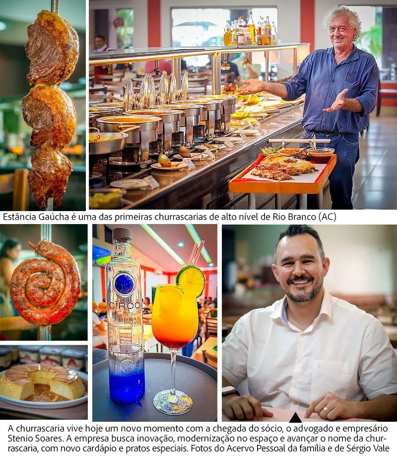 Aberta há mais de 14 anos na capital acreana, a Estância Gaúcha utiliza cerca de uma tonelada de carne por mês, já atendeu 638 pessoas numa mesma noite e vive atualmente um processo de reformulação com a chegada de Stenio Soares, sócio, advogado e administrador de empresas que surgiu com a proposta de unir inovação e modernidade à reputação e trabalho já consolidado por Gaúcho e sua equipe na churrascaria.