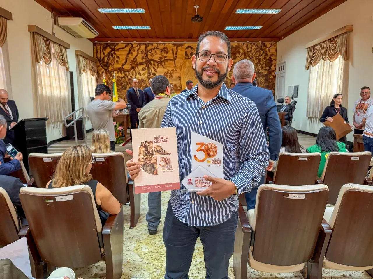 Representando o chefe do Executivo municipal, o secretário destacou a importância da cooperação institucional. “Recebemos essa estas duas homenagens aqui, tanto a revista quanto esse troféu com muita gratidão e alegria, em nome do prefeito Carlinhos do Pelado e de toda a população de Brasiléia. O Projeto Cidadão tem um papel fundamental na garantia de direitos e a Prefeitura seguirá sendo parceira dessa iniciativa que transforma vidas”, afirmou.