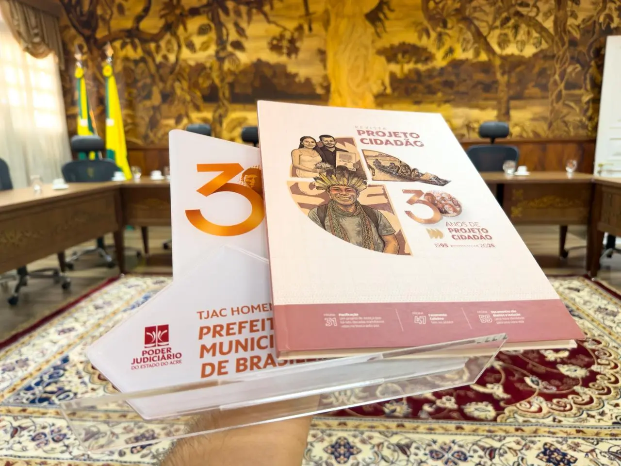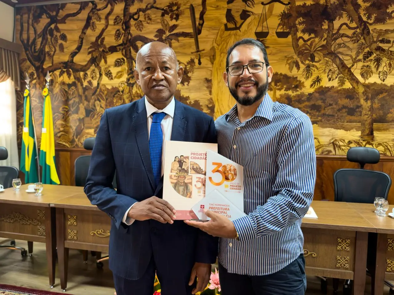 A Prefeitura de Brasiléia foi homenageada nesta segunda-feira, 23, durante a apresentação do cronograma de atividades do Projeto Cidadão para o ano de 2026, realizada no Palácio da Justiça, em Rio Branco. O secretário municipal de Comunicação, Chiquinho Chaves, representou o prefeito Carlinhos do Pelado na solenidade.
