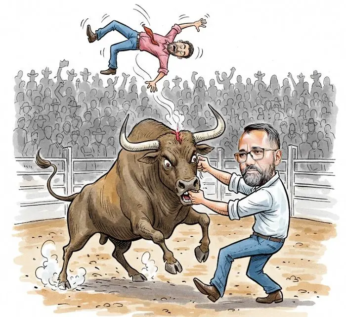 Prefeito de Feijó ainda precisa comer muito mingau para segurar o touro no braço. Tudo ia bem com a aproximação da pré-candidata ao governo Mailza, até que o seu assessor mais próximo ter sido visto flertando com Alan Rick, do Republicano. O resultado: o assessor foi demitido do governo e o prefeito, desesperado namorando com Mailza e namoradão, foi para o evento do Alan e saiu.