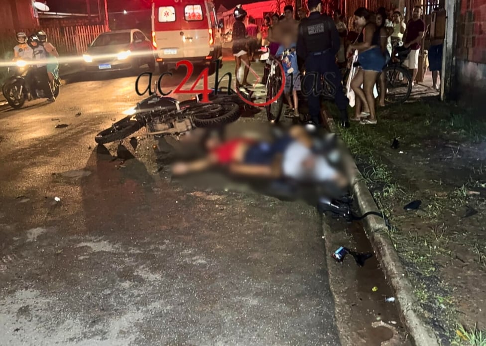Um acidente de trânsito envolvendo duas motocicletas tirou as vidas de Raimundo Paiva de Araújo, de 39 anos, e Charles Silva Marinho, de 51 anos, na noite deste domingo (1º), na rua Baguari, bairro Taquari, no Segundo Distrito de Rio Branco.