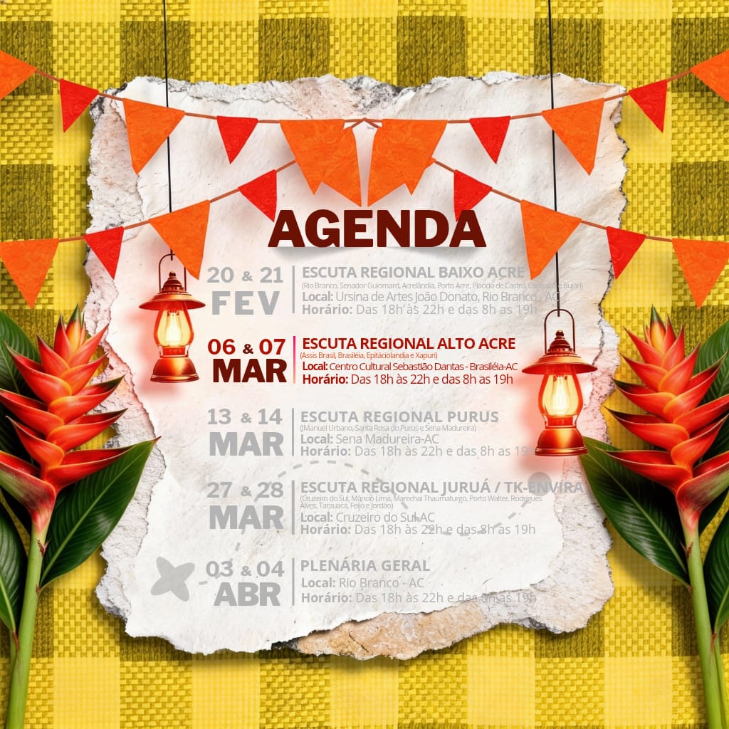 A atividade reúne representantes de Assis Brasil, Brasiléia, Epitaciolândia e Xapuri, com o objetivo de ouvir as demandas dos grupos juninos da região e consolidar encaminhamentos para o fortalecimento do São João acreano. A programação ocorre das 18h às 22h e das 8h às 19h, com debates, alinhamentos institucionais e construção de propostas.