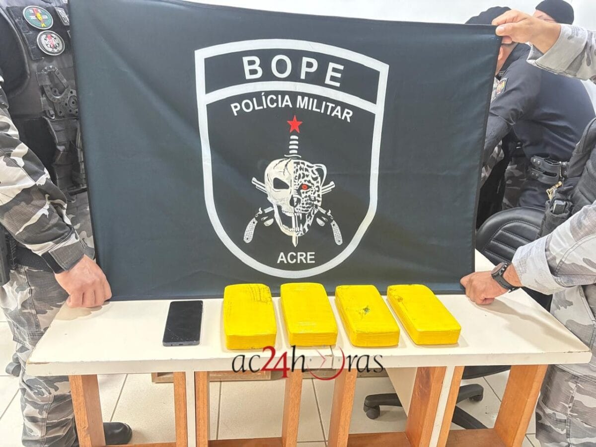 Nelcione Pinheiro da Silva, de 31 anos, foi preso por Policiais Militares do Batalhão de Operações Policiais Especiais (BOPE), por meio da Companhia de Choque, após ser flagrado com aproximadamente quatro quilos de entorpecentes na tarde desta terça-feira (4), na Rua 8 de Março, no bairro Tancredo Neves, em Rio Branco.