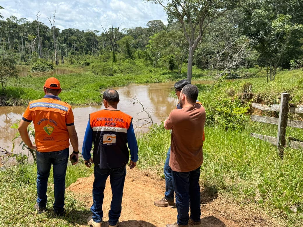 A equipe técnica da Defesa Civil Nacional realizou vistoria, nesta terça (3), às áreas da zona rural atingidas por uma enxurrada no fim de janeiro, junto ao prefeito de Brasileia, Carlinhos do Pelado, que acompanhou a equipe. A agenda também incluiu visita aos locais previstos para a construção de 63 casas destinadas a famílias afetadas pela inundação de 2024.