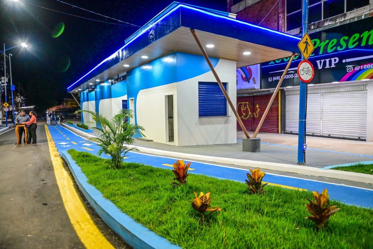 A Prefeitura de Rio Branco entregou na noite desta sexta-feira, 06, a primeira etapa das obras de revitalização do Calçadão da Benjamin Constant, área conhecida popularmente como Calçadão do Camelô. A cerimônia contou com a presença do prefeito Tião Bocalom, autoridades municipais e comerciantes que atuam na região central da capital.