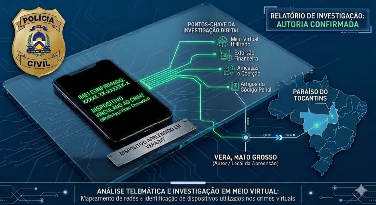 A Polícia Civil do Tocantins desvendou um esquema de abuso sexual virtual e extorsão que teve como vítima uma jovem de 18 anos. A investigação foi conduzida pela 6ª Divisão Especializada de Repressão ao Crime Organizado (DEIC) de Paraíso e resultou na identificação de um suspeito, também de 18 anos, localizado no município de Vera, no Mato Grosso.