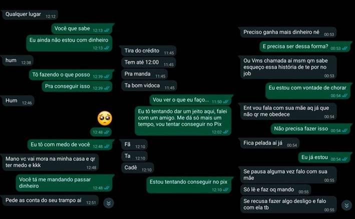 Após ganhar a confiança da vítima, o suspeito a convenceu a enviar fotografias íntimas e também obteve informações pessoais sobre familiares. Com esse material, iniciou uma série de ameaças e constrangimentos no ambiente virtual.