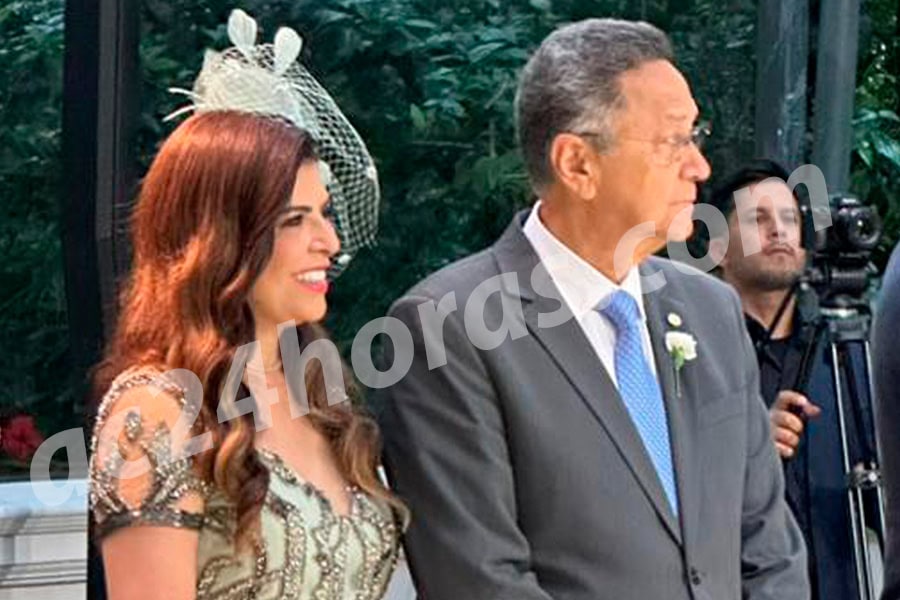 Durante a cerimônia religiosa, Silas foi responsável por levar a filha ao altar. Imagens obtidas pelo ac24horas mostram que ele e Antônia ficaram próximos em alguns momentos da cerimônia para o registro de fotos e também ouvir os votos do casal.