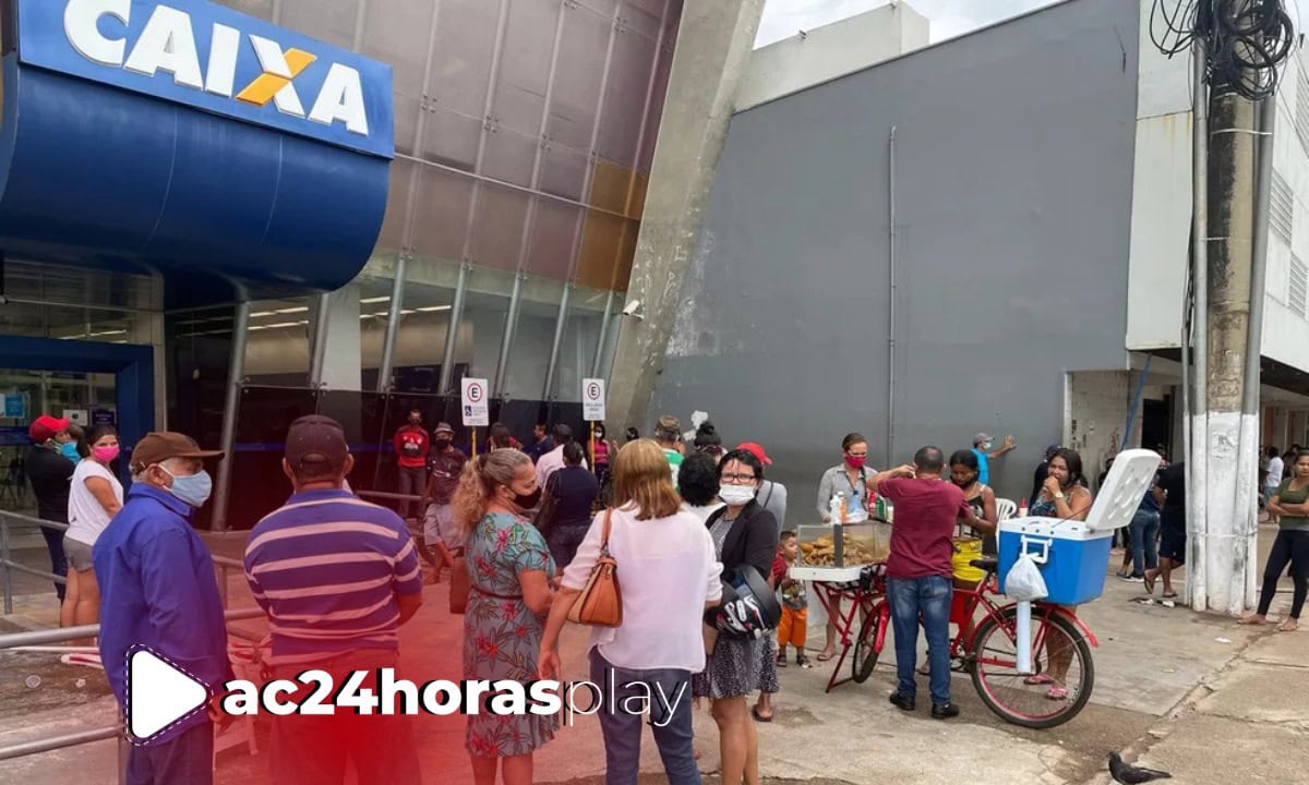 O repórter e videomaker do ac24horas, Kennedy Santos, mostrou na manhã desta segunda-feira (9), a longa fila de pessoas aguardando atendimento em uma agência da Caixa Econômica Federal, no centro de Rio Branco.