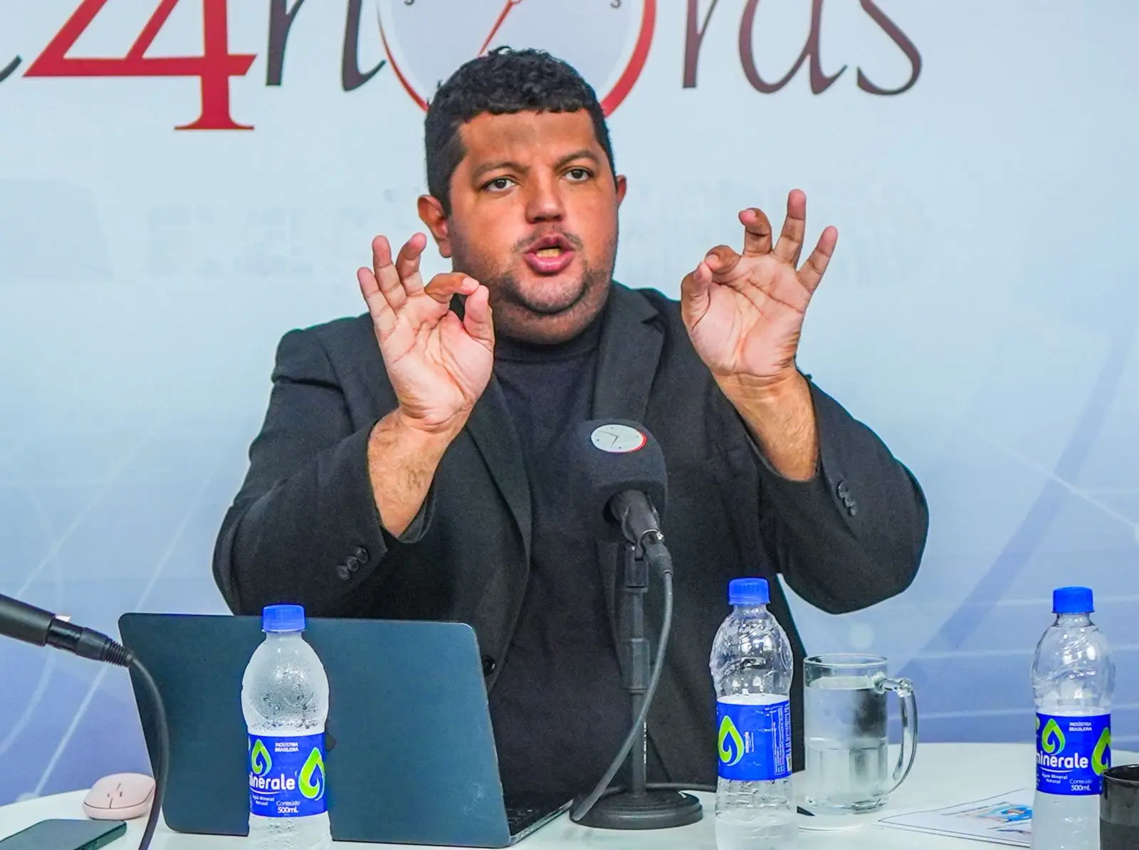 O apresentador Marcos Vinícius destacou que acredita na importância das pesquisas eleitorais, mas reforçou que elas refletem apenas um recorte específico do cenário político. “É muito relativo. A gente acredita em pesquisa, pelo menos eu acredito. Só que ela retrata o momento, o agora”, afirmou.