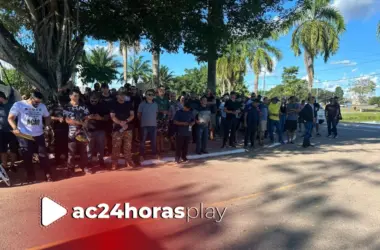 Na tarde desta segunda-feira, 19, servidores da segurança pública do Acre realizam manifestação em frente à Universidade Federal do Acre (Ufac); os manifestantes pedem reajuste