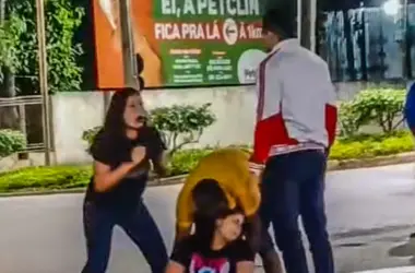 Um motociclista flagrou em vídeo um conflito que está sendo chamado em grupos de WhatsApp como “a briga mais feia do mundo”. A confusão foi