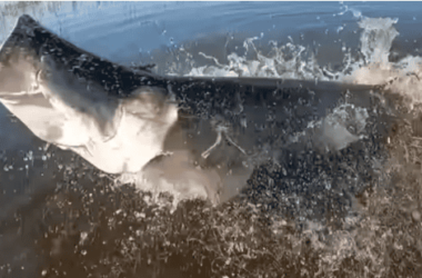 Um tambaqui foi “resgatado” vivo da boca de um pirarucu, que morreu engasgado ao tentar comê-lo, em uma colônia no Ramal da Piçarreira, em Rio