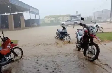 Um forte temporal atingiu a região da fronteira entre o Acre e a Bolívia na tarde desta quarta-feira (12), causando alagamentos em várias ruas e