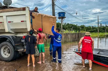 A Defesa Civil e o Corpo de Bombeiros realizaram, nesta quinta-feira (13), a remoção de famílias atingidas pela cheia do Rio Acre, que já alcança
