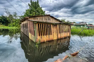 Os moradores do bairro Ayrton Senna, em Rio Branco, já sofrem com os impactos da cheia do Rio Acre. Na Travessa Campinas, parte da rua