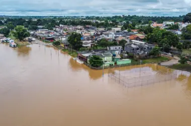 O Rio Acre, que atingiu 14,21 metros às 05h55 desta quarta-feira, 12, segue apresentando sinais de diminuição, segundo o boletim mais recente da Defesa Civil
