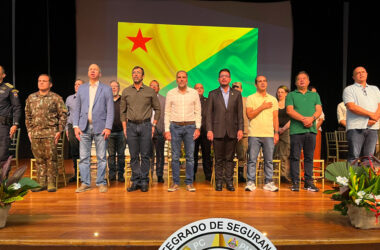 O governador Gladson Cameli, a vice-governadora Mailza Assis e o presidente da Aleac, deputado Nicolau Júnior, estiveram em Brasileia para acompanhar o andamento das obras