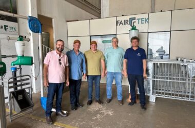 Comitiva composta por membros da Cooperativa Agropecuária do Regional do Alto Acre (Coopeagro), Fernando Lage, Mário Maffi e Lincoln da Silva, e o presidente do