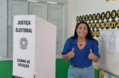 A prefeita e candidata à reeleição, Rosana Gomes (PP), compareceu na manhã deste domingo, 6, à Escola Brigadeiro, anexo da Escola Lupicínio, em Senador Guiomard,