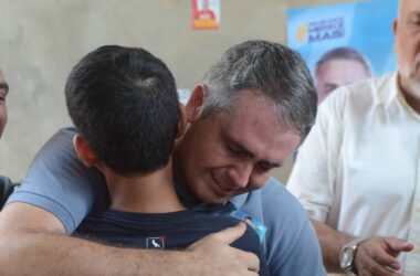 O candidato a prefeito pela Coligação Bora Rio Branco, Marcus Alexandre (MDB), se emocionou ao receber uma surpresa em forma de música, composta por um