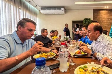 O ex-presidente da República Jair Bolsonaro e o prefeito de Rio Branco, Tião Bocalom, almoçaram com apoiadores no restaurante Pão de Queijo, nesta sexta-feira, 22,