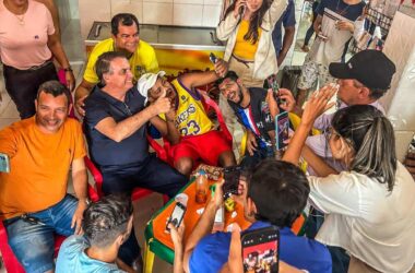 O ex-presidente da República Jair Bolsonaro tomou café da manhã neste sábado (23) no Mercado do Bosque, em Rio Branco, onde fez fotos com apoiadores