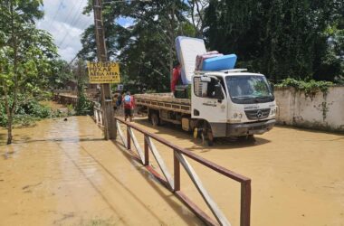 Um dos efeitos do Rio Acre com nível acima dos 15 metros em Xapuri é a inundação da ponte do igarapé Santa Rosa, que liga