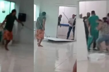 Um vídeo de um homem completamente transtornado, destruindo uma unidade de saúde passou a circular na tarde desta quinta-feira, 23, como se tivesse ocorrido em