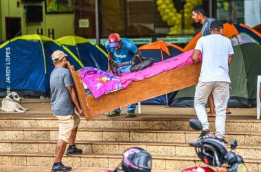 Levando cama e outros objetos domésticos, mais famílias chegaram para acampar na entrada da Assembleia Legislativa do Acre (Aleac) no final da tarde desta quarta-feira,