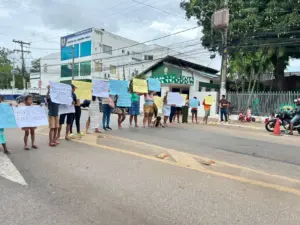 Moradores da comunidade Marielle Franco interditaram na manhã desta quarta-feira, 05, a Avenida Brasil, em frente à Casa Civil, em Rio Branco, em protesto contra
