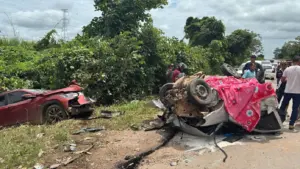 Um grave acidente de trânsito registrado no final da manhã deste domingo (14) resultou na morte de um homem e deixou uma mulher ferida na