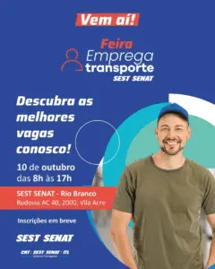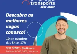Mais de 400 vagas de emprego serão ofertadas nesta sexta-feira, 10 de outubro, durante a Feira Emprega Transporte, promovida pelo SEST SENAT Rio Branco. O