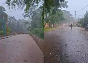 A forte chuva registrada na tarde desta segunda-feira (8) em Rio Branco causou danos à rede de distribuição de energia elétrica no bairro Placas, após