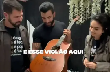O secretário de Saúde do Acre, Pedro Pascoal, e sua esposa, a empresária Patrícia Parente, anunciaram a doação de um violão autografado pelo cantor Gusttavo