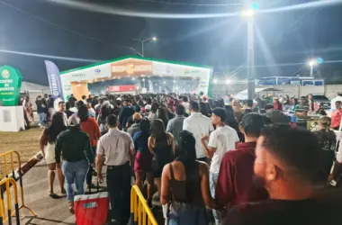 Uma grande fila de pessoas se formou na entrada do Estádio Arena do Juruá, em Cruzeiro do Sul, para acompanhar o show do cantor Gusttavo