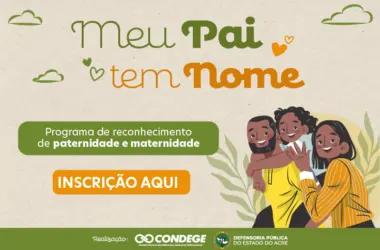 A Defensoria Pública do Estado do Acre (DPE/AC) deu início ao período de inscrições para a quarta edição do programa nacional Meu Pai Tem Nome.